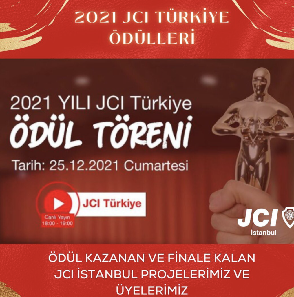 25.12.2021 de JCI Türkiye Ödül Törenine katıldık. Şube olarak 5 ödül aldık. En İyi Liderlik Gelişimine Katkı Projecisi – TOYP Academy En iyi Uzun Dönemli Yerel Toplumsal Gelişim Programı – Afete Dirençli Toplum En İyi Küresel Amaçlar Projesi – Crossroads Kısa Film Projesi En İyi Ulusal Direktör – Sevinç Yazılıtaş %100 Verimli Yerel Organizasyon