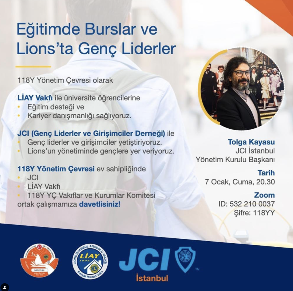 07.01.2022 de LİONS lara JCI İstanbul olarak gençlik çalışmalarımızdan bahsettik ve LİONS Anadolu Yakası Klüpler Fedarasyonu ile ortak çalışmalarımızdan bahsettik.
